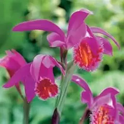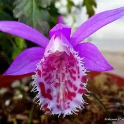 台湾独蒜兰(学名:Pleione formosana Hayata):半附生或附生草本。假鳞茎压扁的卵形或卵球形,上端渐狭成明显的颈,绿色或暗紫色,顶端具1枚叶。叶在花期尚幼嫩,长成后椭圆形或倒披针形,纸质。花葶从无叶的老假鳞茎基部发出,直立,长7-16厘米,基部有2-3枚膜质的圆筒状鞘,顶端通常具1花,偶见2花;花白色至粉红色,唇瓣色泽常略浅于花瓣,上面具有黄色、红色或褐色斑,有时略芳香;花瓣线状倒披针形,长4.2-6厘米,宽10-15毫米,稍长于中萼片,先端近急尖;唇瓣宽卵状椭圆形至近圆形,长4-5.5厘米,宽3-4.6厘米,不明显3裂。花期3-4月。
