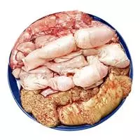 杜父鱼科动物松江鲈的肉。松江鲈又称四鳃鱼、杜父鱼、船叮鱼、伏念鱼。分布于我国渤海、黄海与东海。获得后,去鳍、肠杂,洗净鲜用。