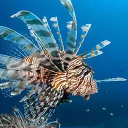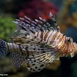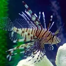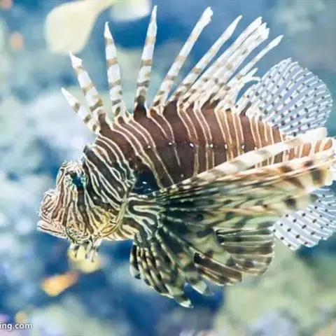 斑鳍蓑鲉是鲉科,蓑鲉属硬骨鱼。体长25-40厘米,体表黄色,布有红色至棕色条纹。背部有毒棘,胸鳍羽…