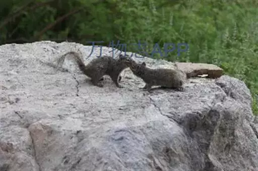岩松鼠昼行性,营地栖生活,在岩石缝隙中穴屠筑巢,性机警,胆大,多栖息于山地、丘陵多岩石或裸岩等地油松林、针阔混交林、阔叶林、果树林、灌木林等较开阔而不很郁闭的生境。岩松鼠每年繁殖1次,每胎可产2~5仔,最多8仔。