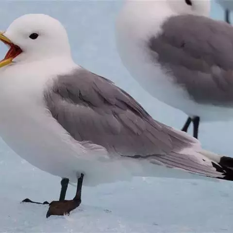 灰翅鸥,夏羽头、颈、腰、尾白色;肩、背和翅上覆羽鸽灰色。冬羽和夏羽相似,但头和颈具淡褐色纵纹,有时…