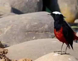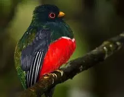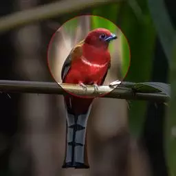 红头咬鹃: 体大,体长约33厘米,体重75-110克。头、颈暗绯红色;背、肩锈褐色。两翅黑色,…