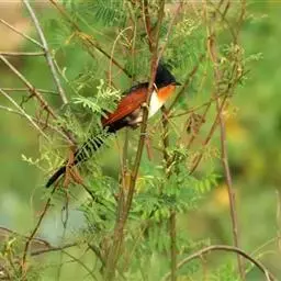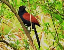 小鸦鹃,是杜鹃科、鸦鹃属的中型鸟类,体长30-40厘米,外形似褐翅鸦鹃,通体黑色,肩和翅栗色,…
