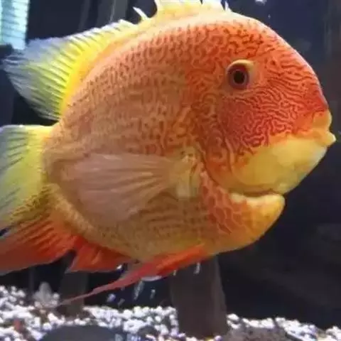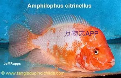 火鹤鱼,热带鱼,鱼学名:Cichlasoma citrinellum 别名寿星头、寿星鱼,原产中美洲的尼加拉瓜、哥斯达黎加等地,属慈鲷科丽体鱼属,体长20-30cm,体形类似金鱼。头大,头顶上方生有一个明显的圆形肉瘤,与众不同。体色粉红,幼鱼体色灰黑,成鱼变成火红色,体色多变,有时体色橘红或黄色。饲养水温22-28℃,饵料有鱼虫、水蚯蚓、小活鱼等。繁殖水温27-29℃,水质是弱酸性软水,亲鱼性成熟6-8个月,雄鱼头顶肉瘤较大,体色鲜红似火,雌鱼体色较淡,每次产卵200-500粒,以平滑岩石或大理石板作产巢。