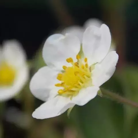 草莓花,别名洋莓,学名Fragaria ananassa Duch.是蔷薇科草莓属植物中最常见的一种,属多年生草本植物。原产美洲,后在法国进行繁殖,是栽培最广泛的草莓品种。八倍体植物,种子发芽期需10-15天。深红色圆形或心脏形浆果体,肉纯白,萼片和苞片展开。草莓花也象征甜蜜。