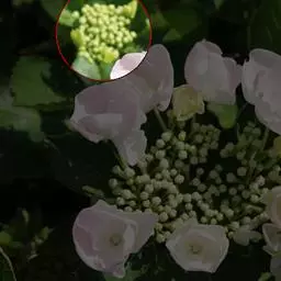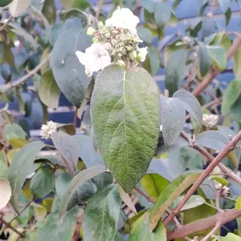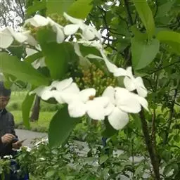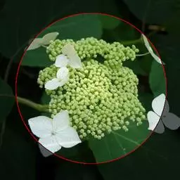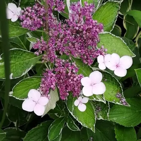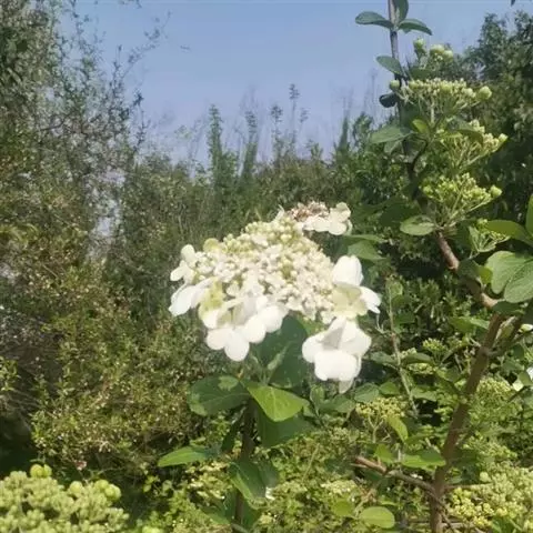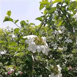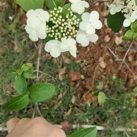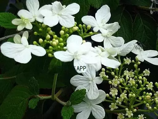 蝴蝶戏珠花花大如盘六寸围,沃土丛生胜浇肥;金黄银白花去后,鲜果累累色彩绯;蝴蝶戏珠花花大如盘,真花如珠,装饰花似粉蝶,远远望去,好似群蝶戏珠,惟妙惟肖,栩栩如生,故而获得“蝴蝶戏珠花”的美名。