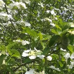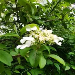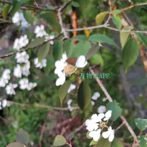 蝴蝶戏珠花(学名:Viburnum plicatum Thunb. var. tomentosum (Thunb.) Miq.)是忍冬科荚蒾属植物。落叶灌木,高达3米;当年小枝浅黄褐色。叶较狭,宽卵形或矩圆状卵形,有时椭圆状倒卵形。花序直径4-10厘米,外围有4-6朵白色、木型的不孕花。果实先红色后变黑色,宽卵圆形或倒卵圆形;核扁,两端钝形。花期4-5月,果熟期8-9月。