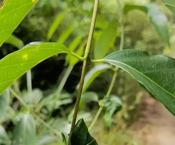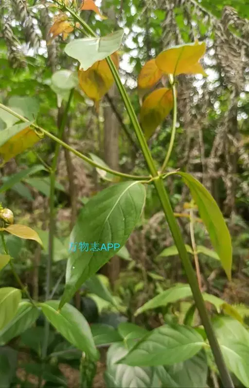 藤本;嫩枝较纤细,方柱形或略有四棱角,无毛。
