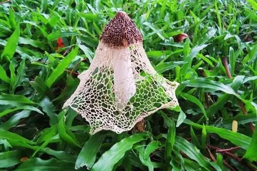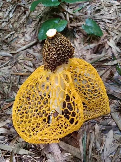 2.在众多的竹荪品种中,有一种黄裙竹荪,也叫杂色荪,菌裙的颜色为橘黄色或柠檬黄色,这种黄裙竹荪有毒,不可食用。