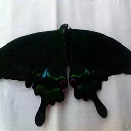 天堂凤蝶翅展可达105mm。前、后翅自基角至后缘约1/2~2/3端为纯净的宝蓝色,后角至后缘1/3…