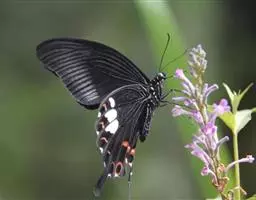 美凤蝶(Papiliomemnon)又名多型凤蝶,是一种雌雄异型的蝴蝶。“memnon”为希腊神话中的埃塞俄比亚国王,足以显示出这种蝴蝶的雍容华贵。该蝶展翅有105—130毫米,雄性翅正面蓝黑色,呈天鹅绒状,前翅反面基部有1个大红斑,该斑有时在前翅正面亦会现。