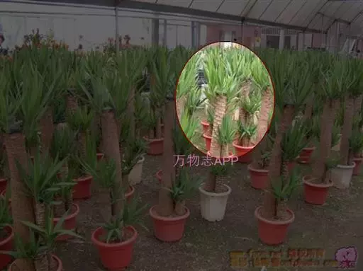 象脚丝兰又叫象脚玉兰,与凤尾兰同属于龙舌兰科的丝兰属,两者的形态特征也较为相似。象脚丝兰为常绿木本植物,在原产地株高可达10米,盆栽的株高多为l一2米。茎干粗壮、直立,褐色,有明显的叶痕,茎基部可膨大为近球状。叶窄披针形,着生于茎顶,末端急尖,长可达100厘米、宽约8—10厘米;叶革质,坚韧,全缘,绿色,无柄。