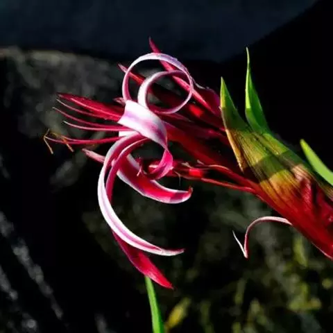5. 养护:为了使花朵开的更好,可在花葶露头之后每周添加一次含磷钾高的营养液。当花葶长到约3cm时,将环境温度提高至25度。开花期把植株放在约10度的凉爽之处,这样做可是花色更鲜艳,花旗更长。花后待春季暖时,把水养白肋朱顶红栽种到地下养护,促使球茎增大和产生新种球。球茎在8~13度条件下储藏4~6周使其休眠。冬季再重新水养,春季时又能开花。