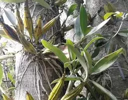 刀叶石斛:茎近木质,直立,有时上部分枝,扁三棱形,具多个节。叶二列,疏松套叠,厚革质或肉质,斜立,…
