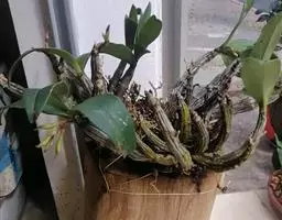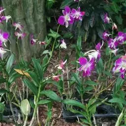 通常选用四壁多孔的塑料或陶瓷花盆,用碳根、泥炭藓、树皮块、木炭块等作盆栽材料。根据兰苗的大小,选择不同规格的花盆,但不宜用大盆栽小苗口上述栽好材料在使用前必需在清水中浸泡1天以上备用。盆底要多垫大瓦片或碎砖块,深度至盆底约1/3处,然后将兰苗放于盆中央,并在一旁插一细竹竿以固定兰苗,再填入其他栽培材料,注意根与根之间用材料隔开。