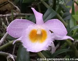 喉红石斛:附生。茎丛生,直立,粗短,近棒状纺锤体。叶2-4枚,生于茎顶。总状花序顶生,花序轴长5-…