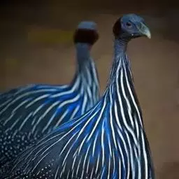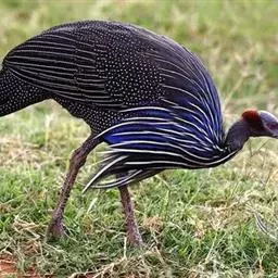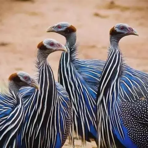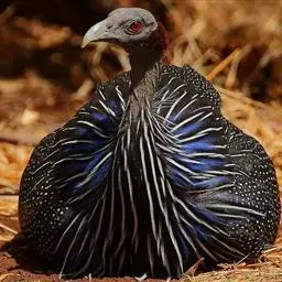 鹫珠鸡:是珠鸡科中体形最大的一种,因头颈部像兀鹫而得名。雌雄羽色相似,为黑色基底上遍布白色点斑,…