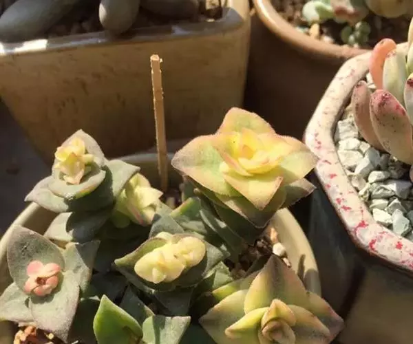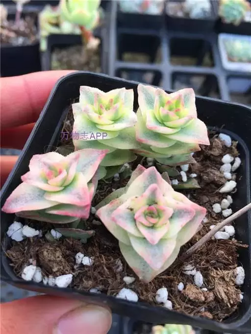 粉红十字星锦(Crassula pellucida variegata)是十字星锦的一个品种又名星乙女锦 ,属于景天科青锁龙属,因叶子有粉色环绕而得名,原产地南非开普敦地区,为多年生肉质草本植物,植株丛生,有分枝,茎肉质,时间养久了茎会逐渐半木质化。