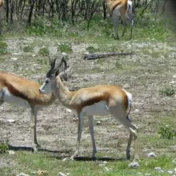 跳羚是哺乳纲、偶蹄目、牛科哺乳动物,属于中型的羚羊。四肢细长;背面毛色黄褐,…