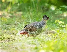 红原鸡是结群活动的乌类,除繁殖季节外,多是7、8只,十几只结群活动,偶尔也能见到20或20多只的大群。它们夜间栖息在树上,清晨下树活动,在林内或林缘觅食。食性很杂,榕树果,竹籽、幼嫩的竹笋、各种花朵、植物的嫩叶和嫩枝、昆虫、蚯蚓等,均是红原鸡的食钧。它们也食常跑到耕地、农田里去觅食各种农作物的种子。在云南南部的许多地方,红原鸡还经常混进村寨旁活动的家鸡群中,也会与家鸡交配,只是孵出来的杂交后代住往野性难改,长大后便飞进森林不再回来。