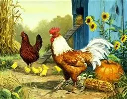 家鸡属于鸟纲,鸡形目,雉科。是由原鸡长期驯化而来,它的品种很多,如来航鸡、白洛克、九斤黄、澳洲黑等。仍保持鸟类某些生物学特性,如可飞翔,习惯于四处觅食,不停地活动。听觉灵敏,白天视力敏锐,具有神经质的特点,食性广泛,借助吃进砂粒石砾以磨碎食物。