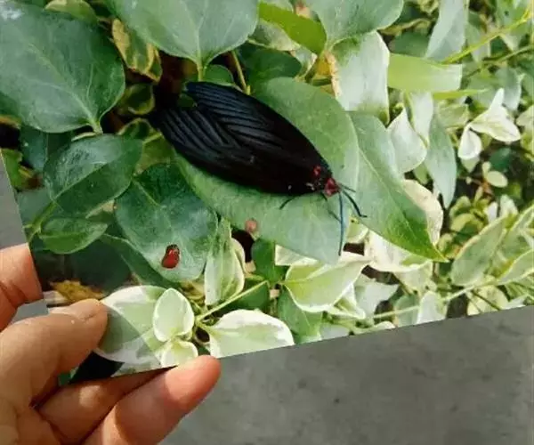 【别名】又名重阳木斑蛾。 【分布】分布在山东、江苏、浙江、湖北、湖南、福建、台湾、广东、广西云南等地。其中山东是枣庄市在2015年9月首次发现。 【寄主与危害】寄主为重阳木、棉花等。以幼虫取食寄主叶片,将叶片取食成缺刻或孔洞,发生严重时,吃光叶片仅留叶脉,严重影响寄主生长。 【形态特征】成虫:体长16~25m,翅展55~68m。前翅黑色,后翅基半部蓝绿色,其余黑色,后翅第二中脉和第三中脉延长成一尾角;头、胸、腹部大部分红色,中胸背面近后端有2个红色斑纹,或连成‘‘U’’字形,腹部背面、侧面及腹面黑斑;复眼黑色,触角黑色,栉齿状。幼虫:灰黄色,体肥厚而扁,头黑褐色,头部常缩在前胸内。体两侧各具列较大的乳白色枝刺,体背具较小刺突;体背面、侧面有成列近圆形黑斑;腹足褐色 。