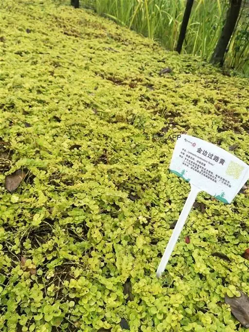 金叶过路黄可作为色块,与宿根花卉、与麦冬、与小灌木等搭配,亦可盆栽。金叶过路黄为报春花科珍珠菜属宿根草本植物,其植株匍匐生长,株高仅为10厘米左右,但地表匍匐茎生长旺盛,最长可达1米以上;其茎节较短,节间能萌发地生根,匍匐性较强。金叶过路黄的叶片为卵圆形,单叶对生,叶色金黄,其花期为5-7月,开杯状黄花。 金叶过路黄枝叶能迅速覆盖地面。在完全覆盖地面以后,金叶过路黄植株会表现出很强的簇拥叠生性状。它的抗杂草能力相当强,因此,在栽培管理中杂草防除工作量较少。金叶过路黄的生长势强,病虫害少,耐践踏,养护管理比较容易。 金叶过路黄的叶片在3-11月呈金黄色,到11月底植株渐渐停止生长,叶色由金黄色慢慢转为淡黄,直至绿色。在冬季浓霜和气温降到-5℃时叶色会转为暗红色。金叶过路黄的叶色鲜艳丰富,且抗寒性强,是优良彩色地被植物,在上海、苏州、南京、重庆等地进行试种,长势良好,被园林绿化工程部门看好,公认为地被植物之精品。据悉,今后在华东、华中等地园林中也将陆续开始使用金叶过路黄,以丰富北方城市景观。