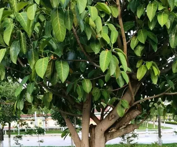 千年高山榕 高山榕树冠大;叶厚革质,有光泽;隐头花序形成的果成熟时金黄色。极好的城市绿化树种。树冠广阔,树姿稳键壮观。只是树体量太大,根系过于发达不太适宜作路树。非常适合用作园景树和遮荫树。又为优良的紫胶虫寄主树。适应性强。极耐荫,适合在室内长期陈设。江南常做行道树及孤植树。