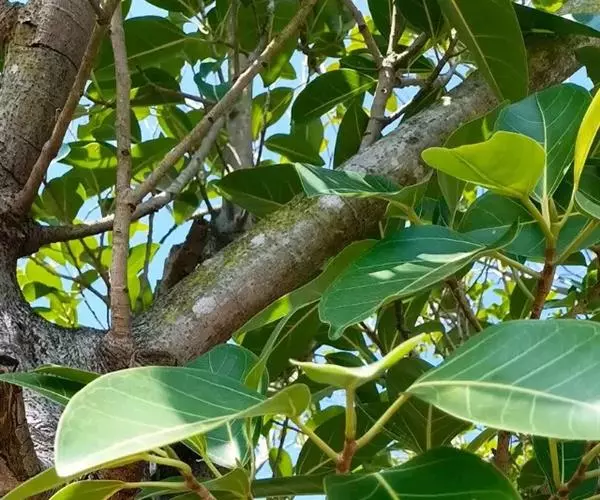三角榕为常绿乔木或小乔木。叶片近三角形,薄肉质,全缘,长4~6厘米,宽3~5厘米,浓绿色。