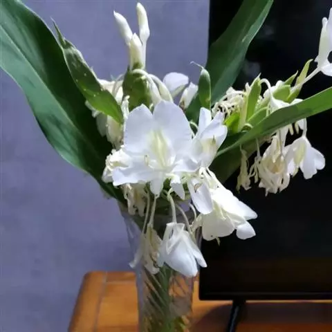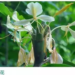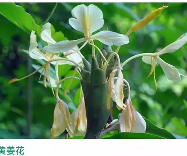 黄姜花被信奉佛教的人们纳入到了“五树六花”的行列,这绝非偶然,由于佛教对香气十分重视,常常用它来比喻修行的德性,供奉佛祖和菩萨时也必须用香,所以气味馥郁的黄姜花能跻身五树六花之列也就顺理成章了。另外,黄姜花采摘下来后直至夜晚都不会凋谢,因此成为人们喜用的宗教花饰材料和必备的寺庙参拜供品。此外,黄姜花的根部提取出的染料还可以染制袈裟。黄姜花的行、味、色均于佛有缘,故称之为人间佛花毫不为过。