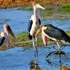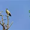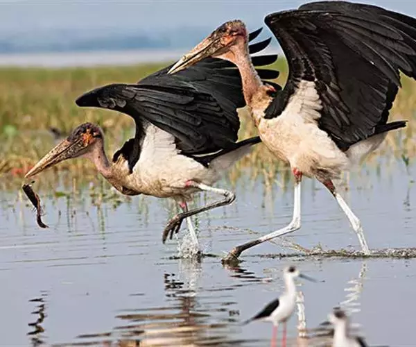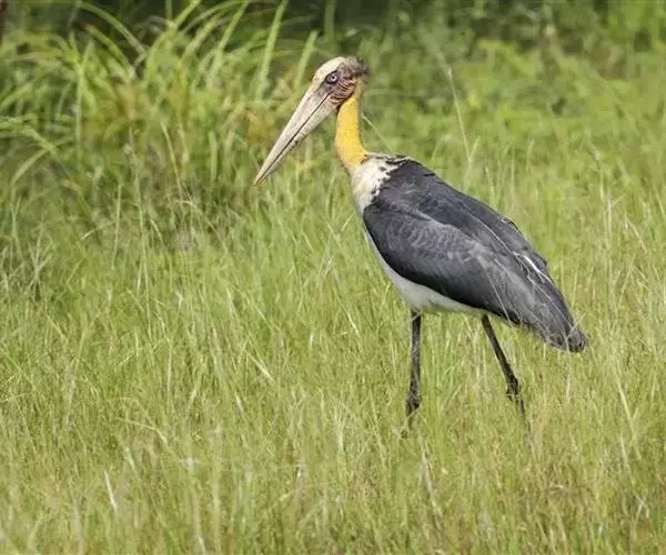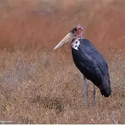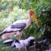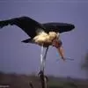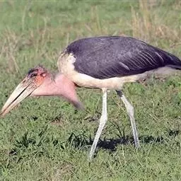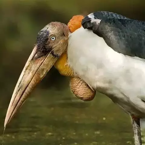 秃鹳(学名:Leptoptilos javanicus)是一种大而笨重的涉禽,体长110-135厘米,体重约10千克,站立时颈直起来,身高可达1.2米。嘴粗而长,脚亦甚长,上体黑灰色,具蓝黑色金属光泽。下体白色,头和颈具稀疏而短的毛发状羽近似裸露,红黄色。飞行时不像其他鹳那样颈向前伸直,而是头缩至肩上,主要通过两翅缓慢扇动、鼓翼飞行。平均每分钟153次。