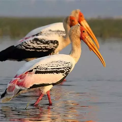彩鹳:鹳科、鹮鹳属的鸟类。体长93-102厘米,体重2-3.5千克。橙黄色的嘴粗而长,…