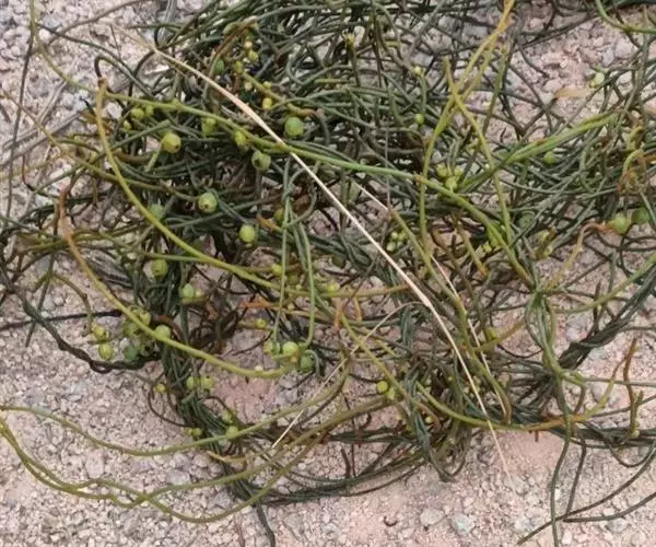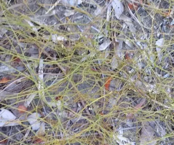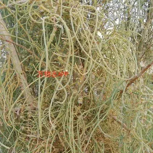 寄生缠绕草本植物,借盘状吸根攀附于寄主植物上。茎线形,绿色或绿褐色,稍木质,幼嫩部分被锈色短柔毛,老时毛被稀疏或变无毛。叶退化为微小的鳞片。