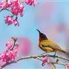 叉尾太阳鸟,雀形目太阳鸟科太阳鸟属留鸟;为小型鸟类,雄鸟头顶辉蓝绿色,上体橄榄绿色,腰明黄色,…