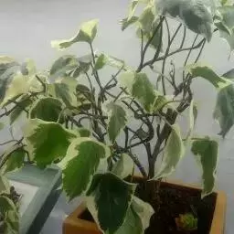 茎节短,小叶密生。叶片较小,长3~4厘米,宽2~3厘米,叶色绿色,有奶白色至黄绿色的斑纹。