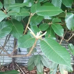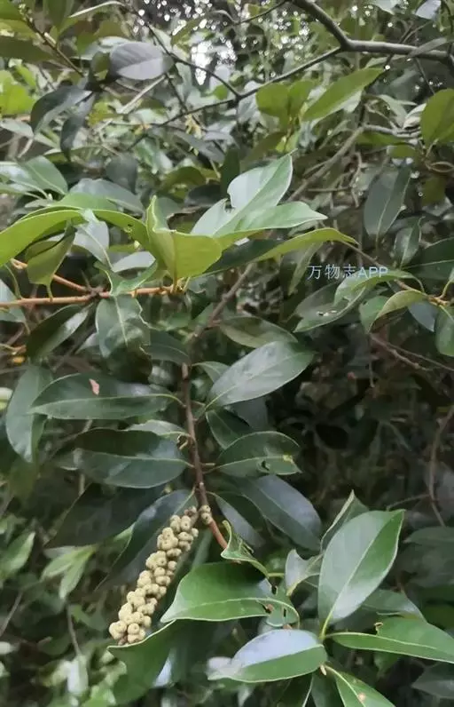 乔木,高15米,胸径40厘米,一年生枝、嫩叶叶柄、叶背及花序轴均密被灰黄色短绒毛,二年生枝的毛较疏且短,常变为污黑色。叶革质或厚纸质倒卵形、倒卵状椭圆形或长椭圆形,长6-14厘米,宽2.5-5.5厘米,顶部突急尖,短尾状,或长渐尖,基部楔形,上部叶缘有2-4个浅裂齿或全缘,中脉在叶面微凸起,侧脉每边很少多于10条,支脉通常不明显,成长叶背面无毛或几无毛,有较厚的蜡鳞层;叶柄长1-2厘米.