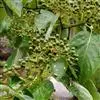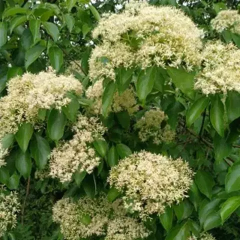 伞房状聚伞花序顶生,较密,宽3厘米,被白色短柔毛;总花梗圆柱形,长1.1-2.2厘米,被淡白色短柔毛;花小,白色或淡黄白色,长5-6毫米,直径6-8.2毫米,花萼裂片4,尖三角形,长约0.1-0.2毫米,短于花盘,外侧有疏生短柔毛;花瓣4,卵状椭圆形,长3-3.8毫米,宽1.1-1.8毫米,先端急尖或短渐尖,上面无毛,下面疏生贴生短柔毛;雄蕊4,长5-5.5毫米,着生于花盘外侧,花丝线形,微扁,长4-4.3毫米,无毛,花药淡黄色,2室,卵状椭圆形,长1.1-1.3毫米,丁字形着生;花盘垫状,高约0.2-0.25毫米;花柱圆柱形,长2.1-2.5毫米,近于无毛,柱头盘状,宽于花柱,子房下位,花托倒卵形,长1.2毫米,直径1毫米,被贴生灰白色短柔毛;花梗纤细,长2-6.5毫米,被淡白色短柔毛,与子房交接处有关节。