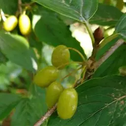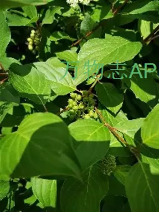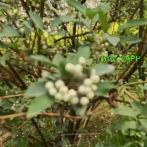 核果长圆形,微扁,长约8毫米,直径5.5-6毫米,成熟时乳白色或蓝白色,花柱宿存;核棱形,侧扁,两端稍尖呈喙状,长5毫米,宽3毫米,每侧有脉纹3条;果梗细圆柱形,长3-6毫米,有疏生短柔毛。花期6-7月;果期8-10月。