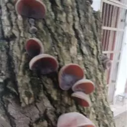 灰树花在不良环境中形成菌核,菌核外形不规则,长块状,表面凹凸不平,棕褐色,坚硬,断面外表3~5毫米呈棕褐色,半木质化,内为白色。子实体由当年菌核的顶端长出。
