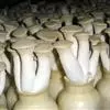 袋式出菇——将长原基的菌袋移入出菇室,保持温度20~22℃,空气湿度85%~90%,光照200~500勒克斯,3~5天后除去环、棉塞,直立床架上,袋口上覆纸,纸上喷水,每天通风2~3次,每次1小时。约20~25天后,菌盖充分展开,菌孔伸长时采摘。采摘时,可用小刀将整丛菇体割下,连采2~3潮,生物效率30%~40%。