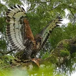 角雕和冕鹰雕,菲律宾鹰一样,是一些灵长动物的天敌,角雕体态威武,性格凶暴,受到很多喜欢猛禽人的喜爱,但是,不幸的是,对森林的砍伐把这一物种逼上绝路,但角雕十分聪明,他们会在砍伐严重的地区捕捉地面上的猎物,如大型啮齿类,可能还会捕捉小野猪,但这毕竟不是长久之计,如果不保护雨林生态系统,角雕很可能会灭绝,角雕很少吃鹦鹉等,最喜欢吃猴子,如蜘蛛猴,吼猴等,它爪子极其粗壮,力量极大,几乎只需一下就可以杀死猴子,被称为空中美洲豹,鸟中大白鲨,在当地的雨林生态系统中位居食物链首位,可以说,角雕除了人类外,没有任何可怕的天敌