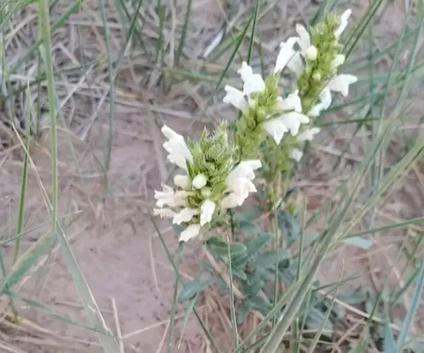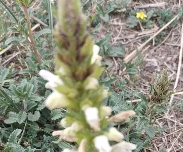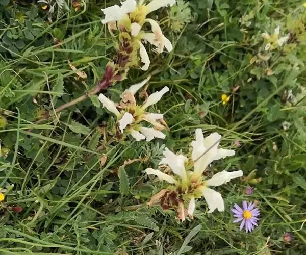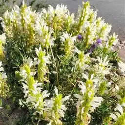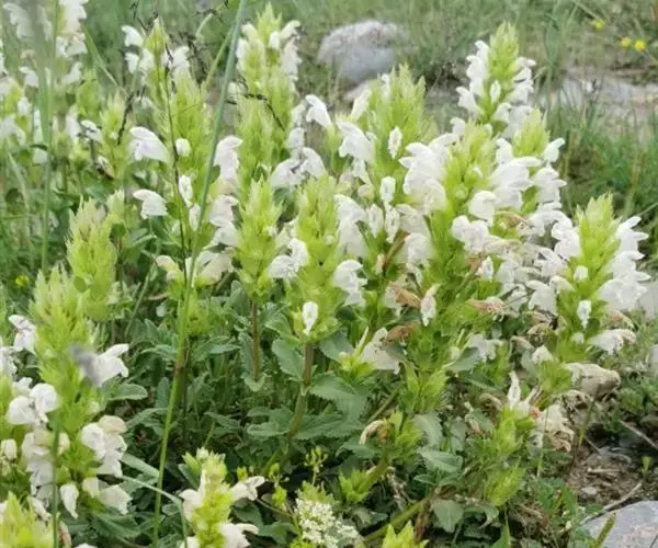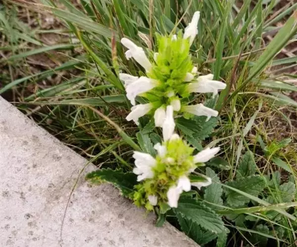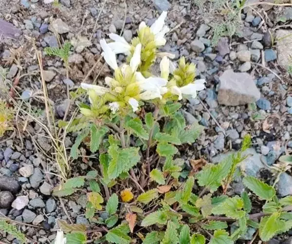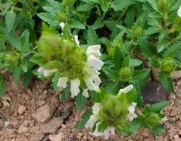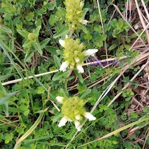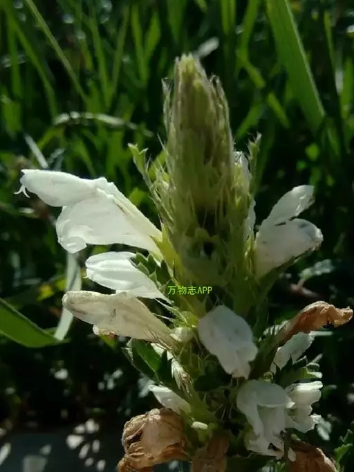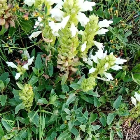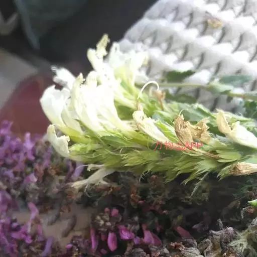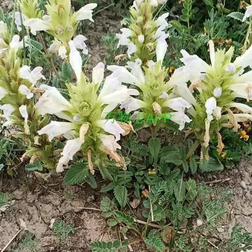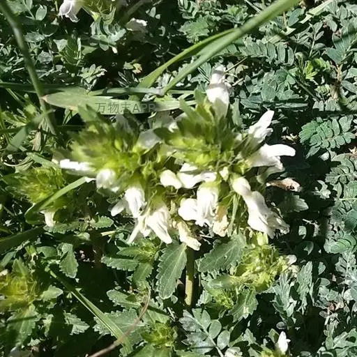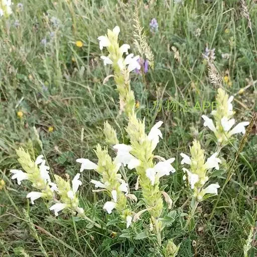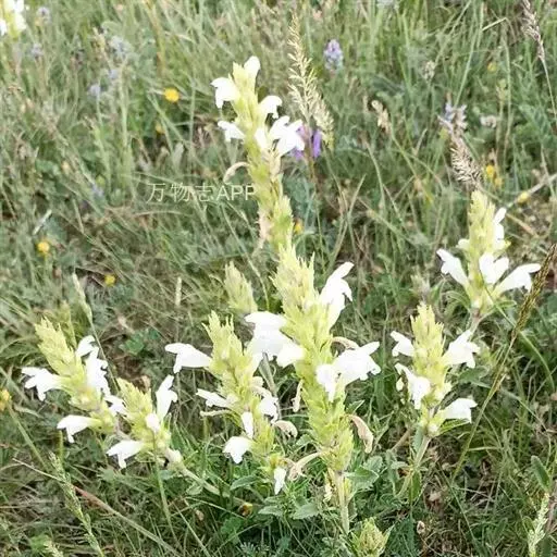 异叶青兰,又名:白花枝子花。多年生草本,高5~40厘米。直根系。茎四棱形,直立或倾斜,多由基部分枝斜上生长,淡紫色或绿色,有倒向短毛。叶对生,有长柄,卵形或卵状披针形,长1~3厘米,宽O.8~1.5厘米,先端钝,基部常为截形、心形或楔形,边缘具圆锯齿。花集生于茎顶呈穗状,每轮通常由4~6花组成;苞片为椭圆状披针形,边缘具齿,齿先端有芒状刺;花萼管状,长约1厘米或过之,无毛,2唇形,5齿裂,下唇短于上唇;花冠近漏斗状,中部以下呈管状,长约2厘米,2唇形,下唇较短,3裂,中裂片有块刻,白色、谈绿色,上唇稍带粉红;雄蕊4,略出于花冠外。小坚果4,黑色,三棱形,稍扁,长2.5毫米,上端截形,下端略锐。花期6~7月。