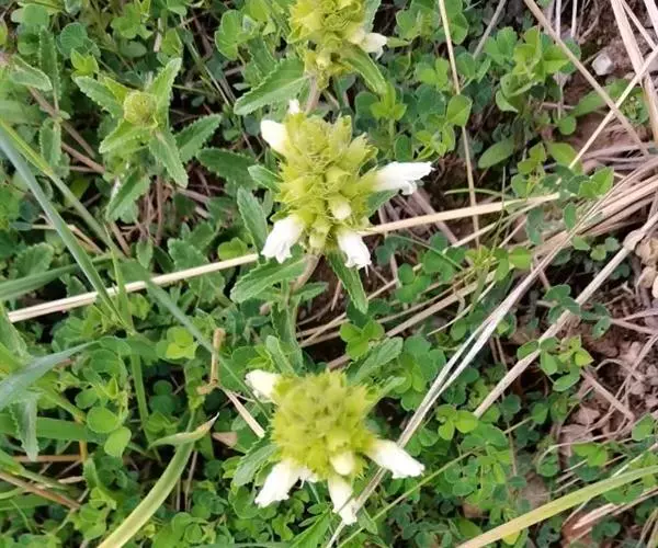 轮伞花序生于茎上部叶腋,长3—6cm;苞片倒卵形或倒披针形,长1—2cm;花萼明显呈二唇形,长13—15mm,外面疏被短柔毛,边缘具短睫毛,唇形花冠淡黄色或白色,长2-2.5cm,外面密被短柔毛,雄蕊4。