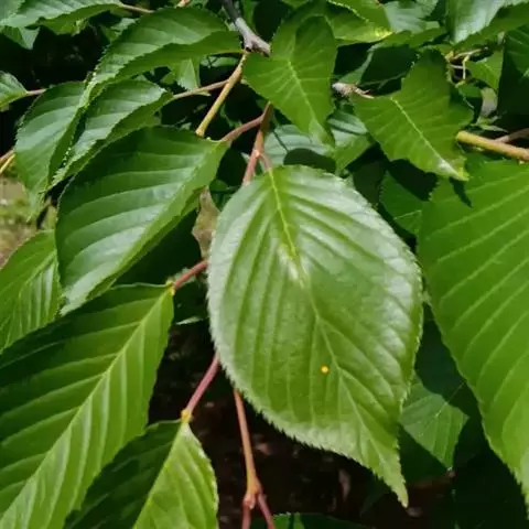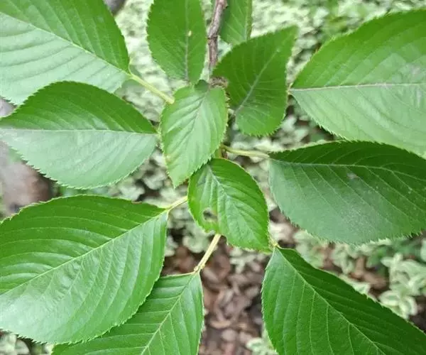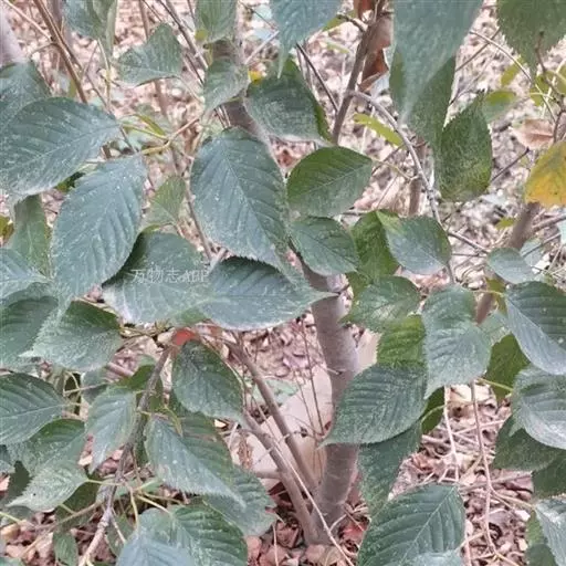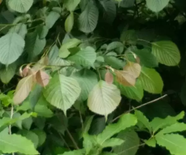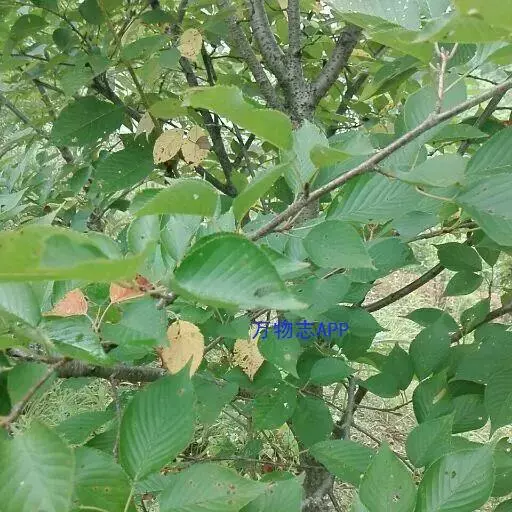 落叶灌木或小乔木,高2-15米;树皮紫黑色或棕灰色;小枝无毛,紫黑色或灰色;芽卵形,鳞片深褐色,光亮。叶纸质,卵形或近圆形,少数椭圆卵形或椭圆披针形,长5-14厘米,宽3-9厘米,先端渐尖,有1突生尾尖,长1-1.5厘米,基部楔形或宽楔形,边缘疏生顶端加厚的锯齿,下部或近基部全缘,上面无毛或散生柔毛后脱落,仅在脉上残存,下面无毛或脉上有伏毛,脉腋具丛毛,侧脉6-11对;叶柄长2-5厘米,有柔毛后脱落。