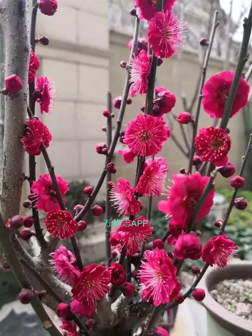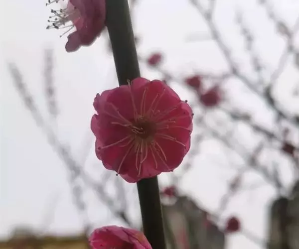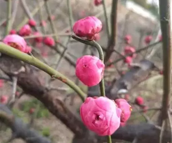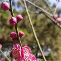 朱砂梅耐寒性稍差,繁殖亦较难,属中晚梅,花期2月底-3月初。