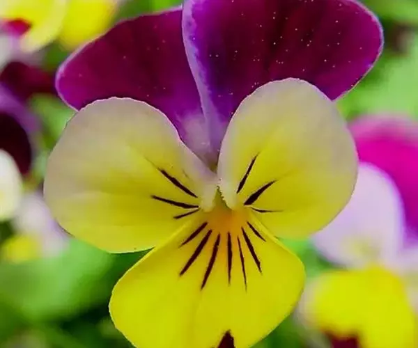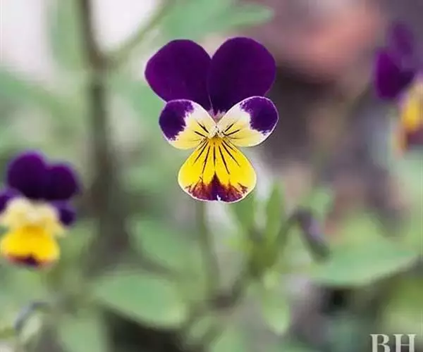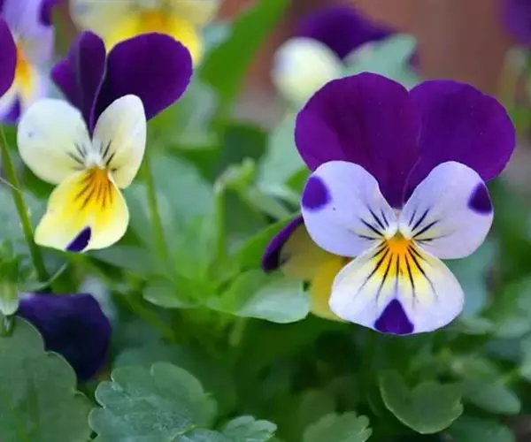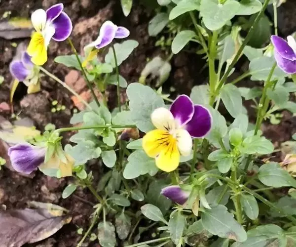 角堇是多年生草本植物,株高10-30厘米,宽幅20-30厘米。具根状茎。茎较短而直立,分枝能力强,四棱,嫩茎绿色,老茎常为紫绿色。叶互生,披针形或卵形,有锯齿或分裂;托叶小,呈叶状,离生。有叶柄。