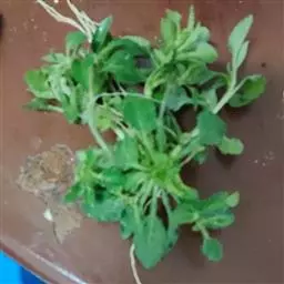 角堇子叶较小,可用200孔穴盘育苗,pH值为5.2-6.2,播种适宜基质是1∶1的泥炭、珍珠岩,用700倍液百菌清与基质混拌可有效防止苗期病害。前一年采收的新种子发芽率一般在90%以上,因此每孔只需播1粒,播后覆盖基质的厚度大体与种子的直径相当。出苗后立即将日/夜温度降至18℃/14℃,以防幼苗徒长。真叶出现后可施用50-75ppm氮肥,随着幼苗长大,氮肥浓度可逐步升高至100ppm。育苗期间应始终保持基质湿润。播后4-5周、4-5片真叶时即可移栽到8厘米营养钵中或定植。