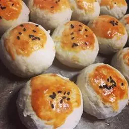 原料:低筋面粉 135克、高筋面粉15克、黄油20克、黄油125克、清水75克、叉烧肉、蚝油、生抽、水淀粉、鸡蛋液少许、白芝麻