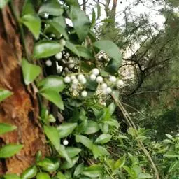 蔓九节是茜草科九节属的攀援或匍匐藤本植物。常以气根攀附树干或岩石;幼枝无毛或有粃糠状柔毛;幼树叶卵形或倒卵形,托叶膜质;圆锥状或伞房状聚伞花序顶生,苞片和小苞片线状披针形,花萼倒圆锥形,花冠白色,冠筒与裂片近等长,裂片长圆形;浆果状核果球形或椭圆形;花期4-6月;果期全年。因叶片紧贴着树干往上生长,宛如一条青龙上树,故又名“上树龙”。蔓九节分布在中国浙江、福建、台湾等省地,在日本、朝鲜、越南等国也有分布,生长在海拔70-1360米的平地、丘陵、山地、山谷水旁的灌丛或林中。喜温暖湿润,不耐寒,耐荫,适宜选用排水良好、富含有机质的砂质土壤。蔓九节在《世界自然保护联盟濒危物种红色名录》中属于无危。繁殖方法一般为扦插、压条、播种繁殖。据《福建药物志》中记载蔓九节“有祛风除湿,舒筋活络的功效。主治风湿关节痛,头风痛,手足麻木坐骨神经痛,腰肌劳损,