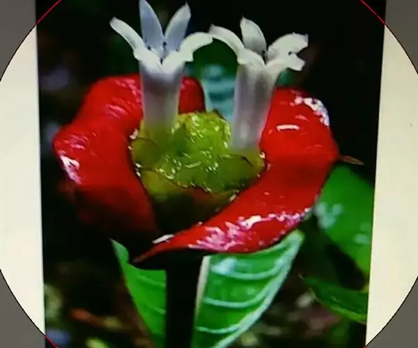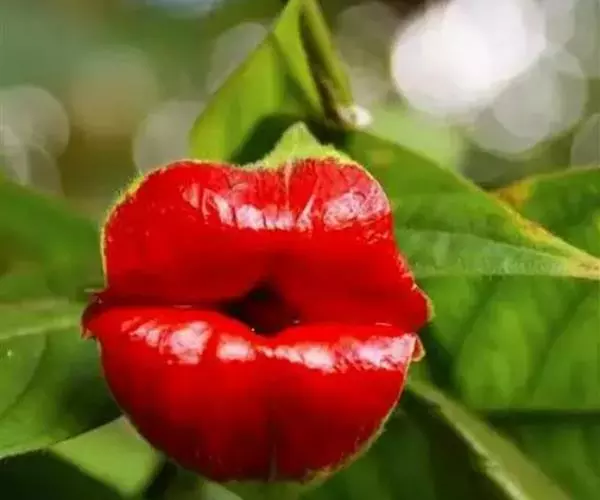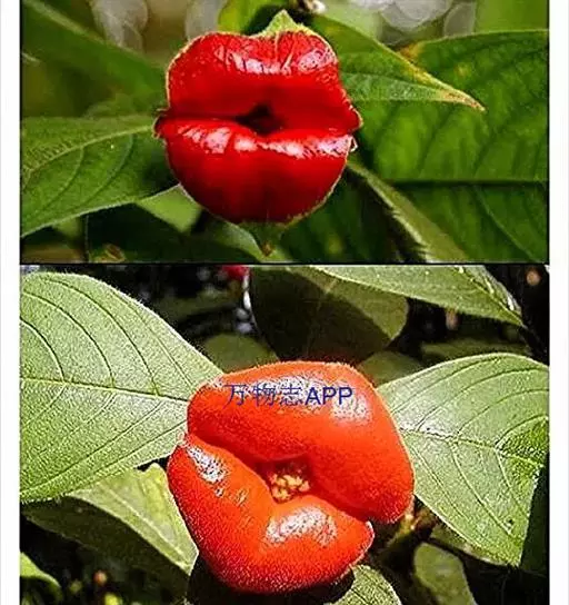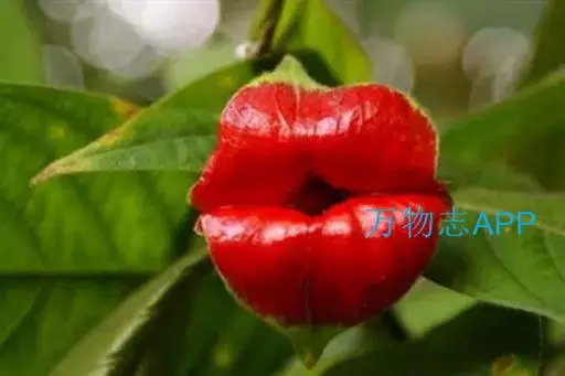 形似嘴唇的红色部分并非真正意义上的花瓣,而是花朵的苞片。这种植物颜色鲜红,造型奇特。看似经过技术处理过的,然而,可以很确定地说它那诱人的嘴唇是天生的,而非经过技术处理的。